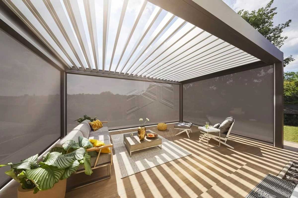 با داشتن سقف آلومینیومی متحرک، میتوان فضای بیرون را به فضای درون ساختمان وصل کرد و استفاده بهینه از فضای باز را امکانپذیر ساخت.